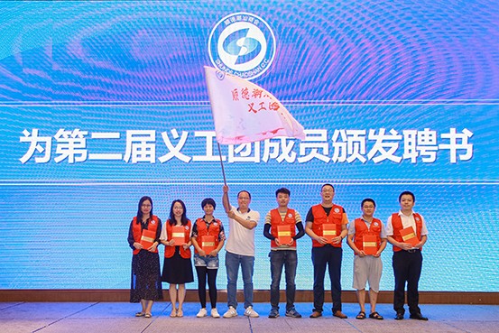 理事、第二屆義工團團長 吳少東(左四)為義工團成員頒發聘書