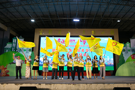 順德區副區長、區公安局局長 陳志雄 為第三批14個新市民學堂授牌 新市民志愿服務隊成立 接著,順德新市民服務志愿者總隊在晚會上授旗正式成立,涵蓋異地商會、美容美發、養老照護、議題專委、藝術團等領域,陣容龐大,編織新市民參與基層治理巨大網絡。我會也積極參與到踐行新市民安居樂業在順德的志愿服務當中來,并成為順德區新市民志愿者總隊分隊,我會副秘書長郭鍛堎擔任隊長并代表商會上臺接受分隊旗幟。